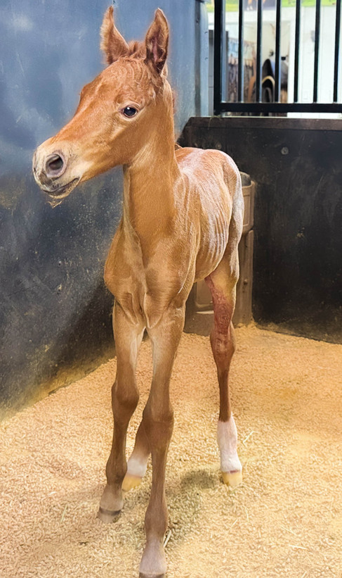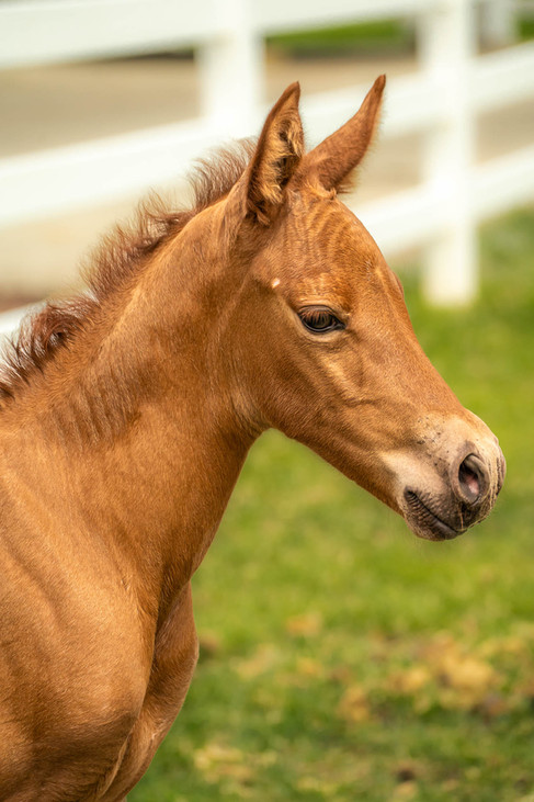 "Suzy" has the longest legs and loves to run and run and run! She would just tear up the turn out area when we let her out as a young foal. She would get the other foals to fun with her and they had a blast together. She is curious in nature and a very friendly filly.
